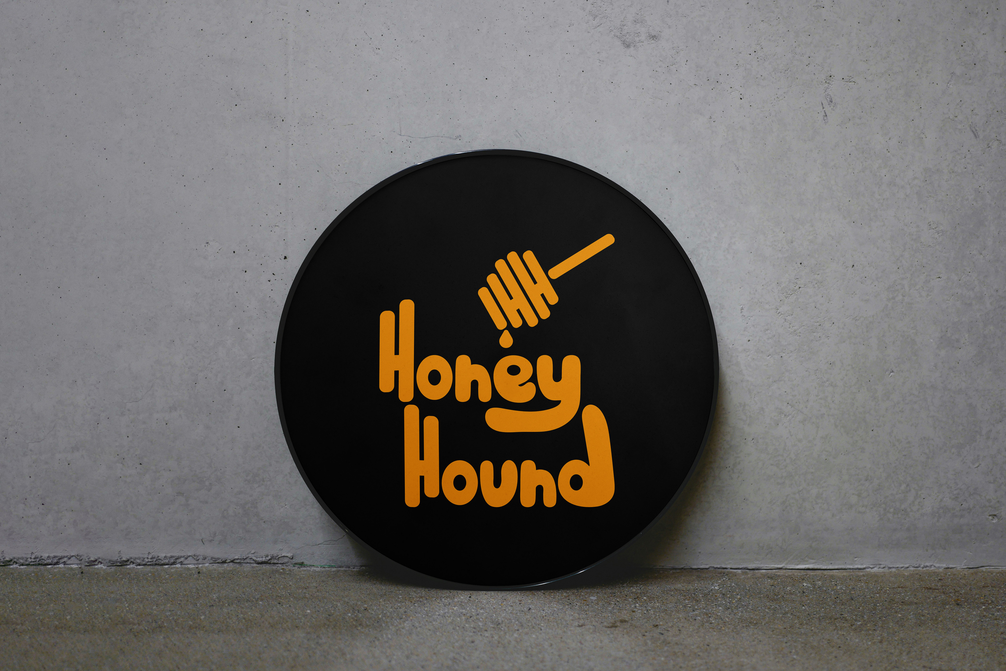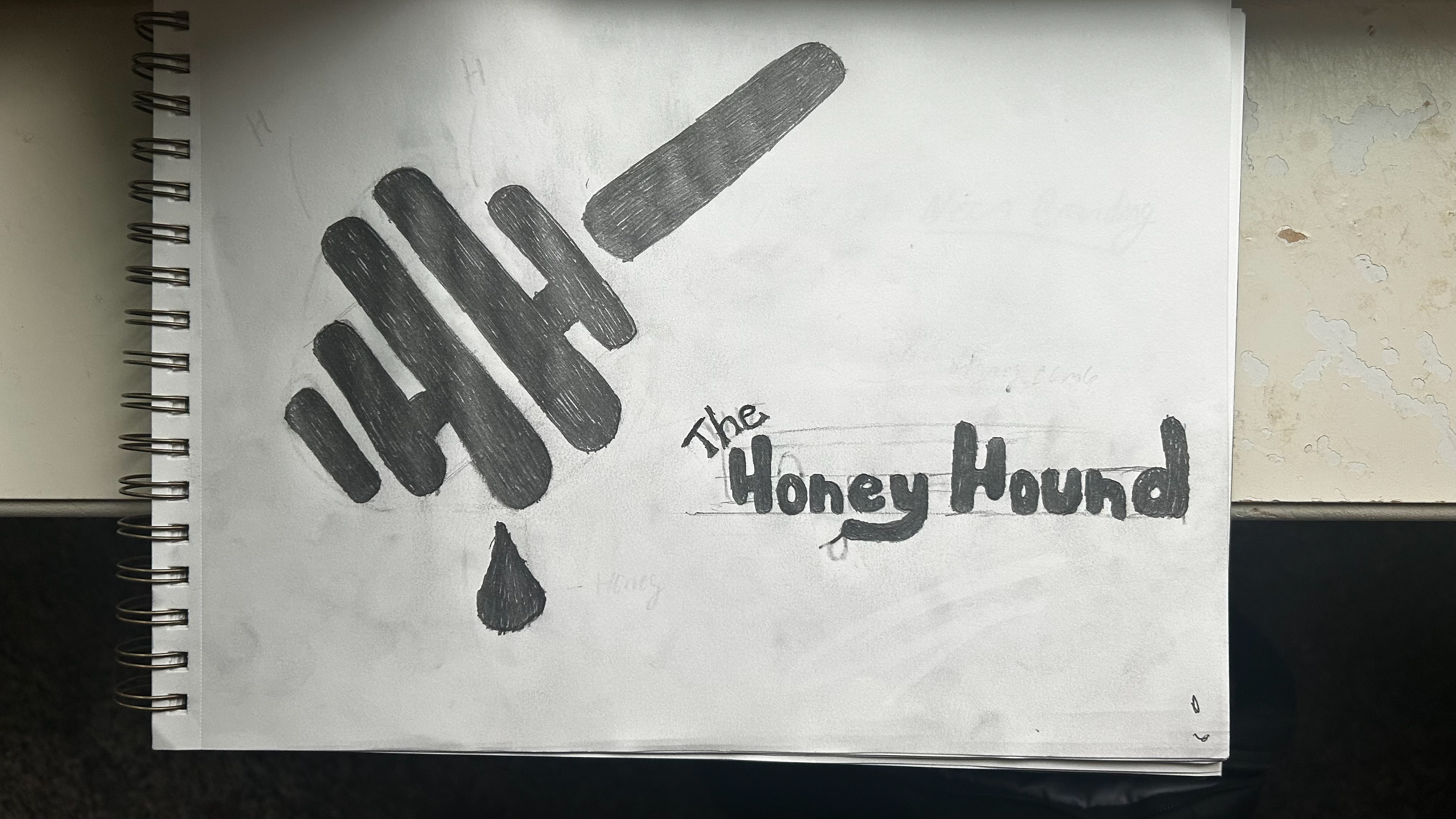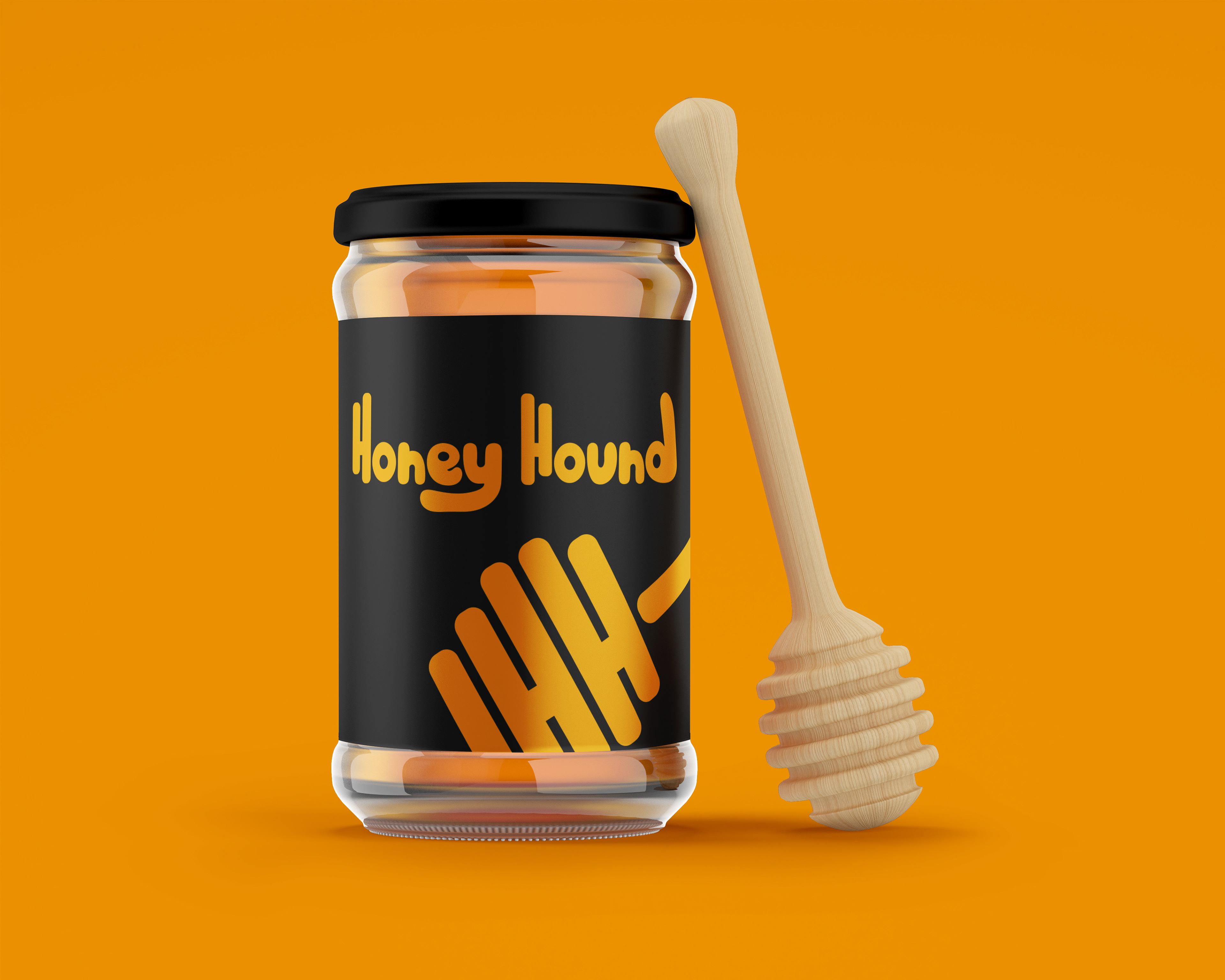 To solve this problem I sketched up a honey dropper with a drip of honey coming off of it. I also hid a double H inside the dropper to tie in the name Honey Hound. Then using the rustic yellow and black color scheme to tie back to the company and their vision and to the bees that make the honey.
